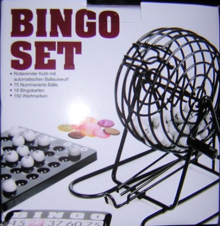 Sie suchen ein Mini Bingo-Komplettset als Thekenbingo oder für den kleinen privaten Kreis? Dann empehlen wir Ihnen diese stabile Mini Bingotrommel mit automatischem Kugelauswurf. Handkurbel rechts herum drehen und Kugeln mischen, links herum drehen, eine Kugel wird ausgeworfen, läuft über die Ablaufschiene und kann auf der Kontollablage abgelegt werden. Zu dieser kleinen Bingomaschine liefern wir gratis einen Bingoblock-Bingotickets für das Bingo-Spiel 75. Wie Sie 75er Bingo oder 90er Bingo spielen, lesen Sie in obiger Rubrik: Bingo spielen. |